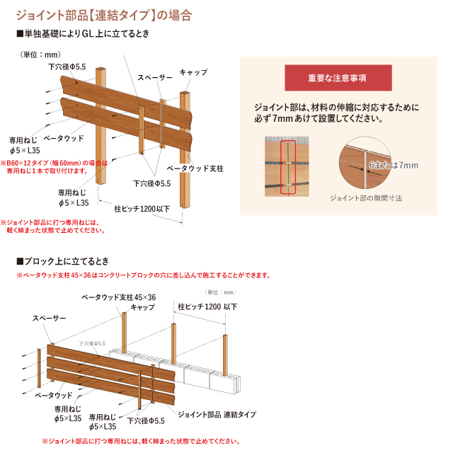 ●支柱60×60,70×70の柱ピッチは1200mm以内で施工してください。