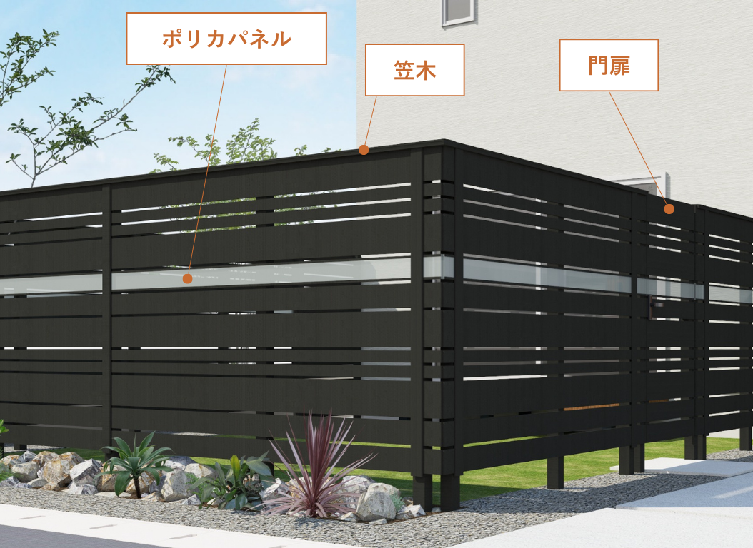 お庭や玄関の目隠しに。リアリティーあふれる木目や、豊富なカラー展開。