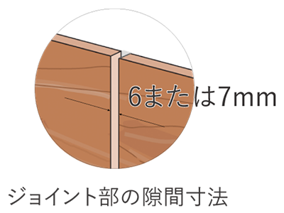 ジョイント部は伸縮対応のため、板材2393mmなら7mm、1994mmなら必ず6〜7mmの隙間を空けて設置してください。