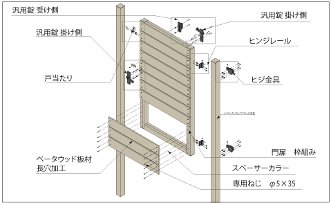 ベータウッド門扉はベータウッドの部材を利用して組み立てられる門扉商品です。