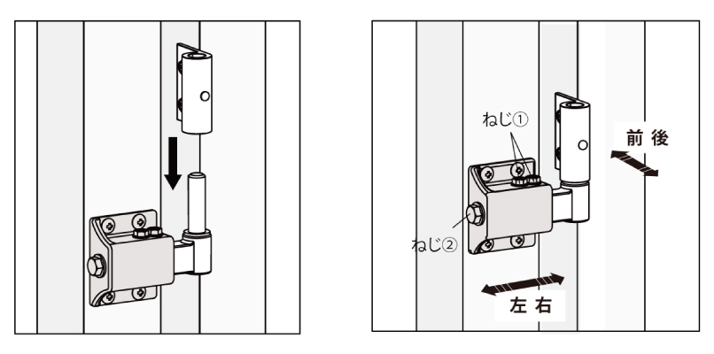 門扉の吊り込みが簡単になったほか、微妙な位置調整も容易にできるようになりました。
