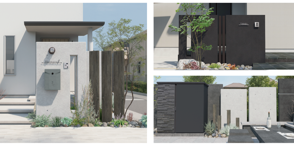 門袖としての活用はもちろん、フェンスと合わせて目隠しゾーンでの活用など、アイデア次第で提案の幅は無限に広がります。